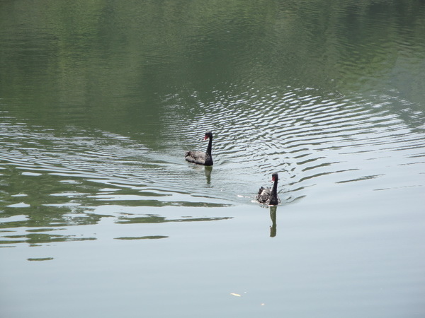 清澈的湖面黑天鵝悠游其中